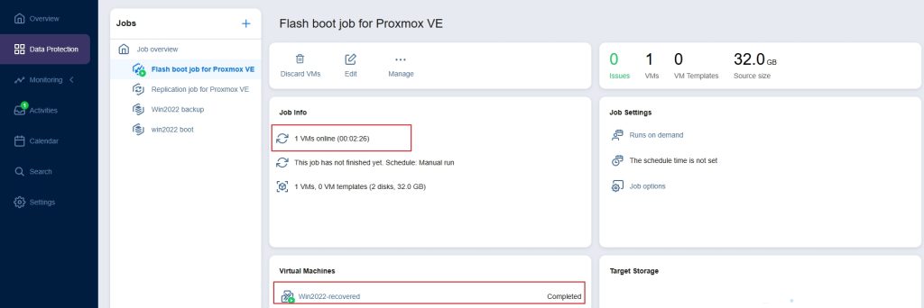 Flash Boot is perfect for quick testing or bringing failed systems back online in minutes. Having this capability in Nakivo for Proxmox VE is truly a game-changer — a feature that can save both time and stress when every second counts.