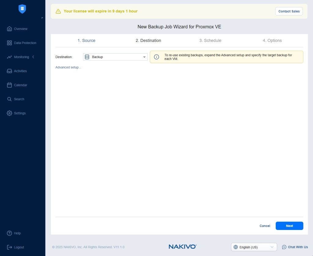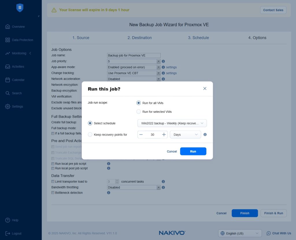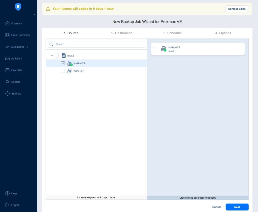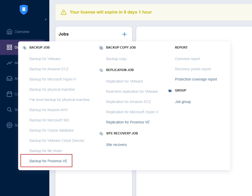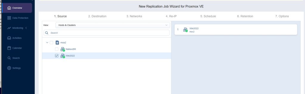 In Nakivo, the process for backing up Proxmox environments is the same as for other hypervisors. The only difference is that instead of selecting VMware, you simply choose Proxmox when creating your backup job. Let’s take a look at how to set up and run a Proxmox backup job.