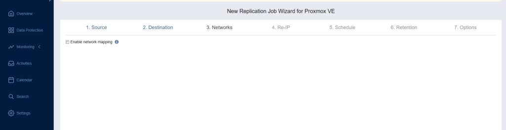 On the Networks screen, you have the option to enable and configure network mapping, allowing you to match source and destination networks for your replicated VMs.