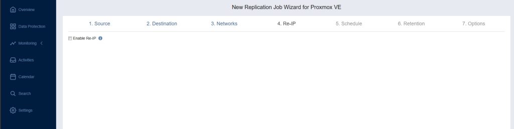 On the Re-IP screen, you can enable the Re-IP option to automatically update IP addresses for replicated virtual machines.