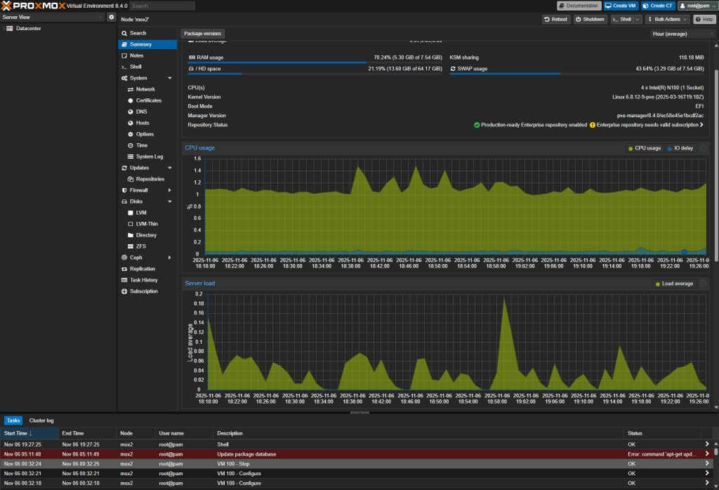 Proxmox VE also excels in storage flexibility, supporting ZFS, Ceph, LVM, iSCSI, and NFS, with advanced features such as live migration, snapshots, and replication. Its ZFS integration provides data integrity, compression, and built-in redundancy, making it ideal for both home labs and enterprise environments.