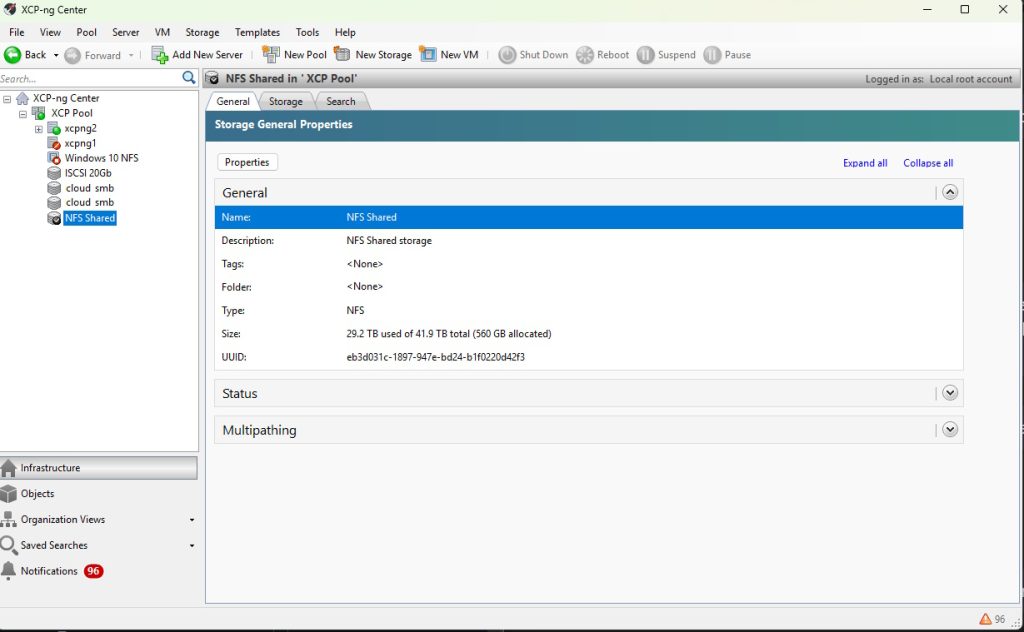 Much like VMware, XCP-ng can run in a two-node cluster, making it a great choice for smaller setups. It works especially well with NFS storage, which is easy to configure and fully supported. While iSCSI and Fibre Channel are also compatible, you may lose some advanced functionality (Storage-Level Snapshots, Fast Cloning and Copy-on-Write, Thin Provisioning & Space Reclamation, VHD Chain Optimization) if you choose those options instead.